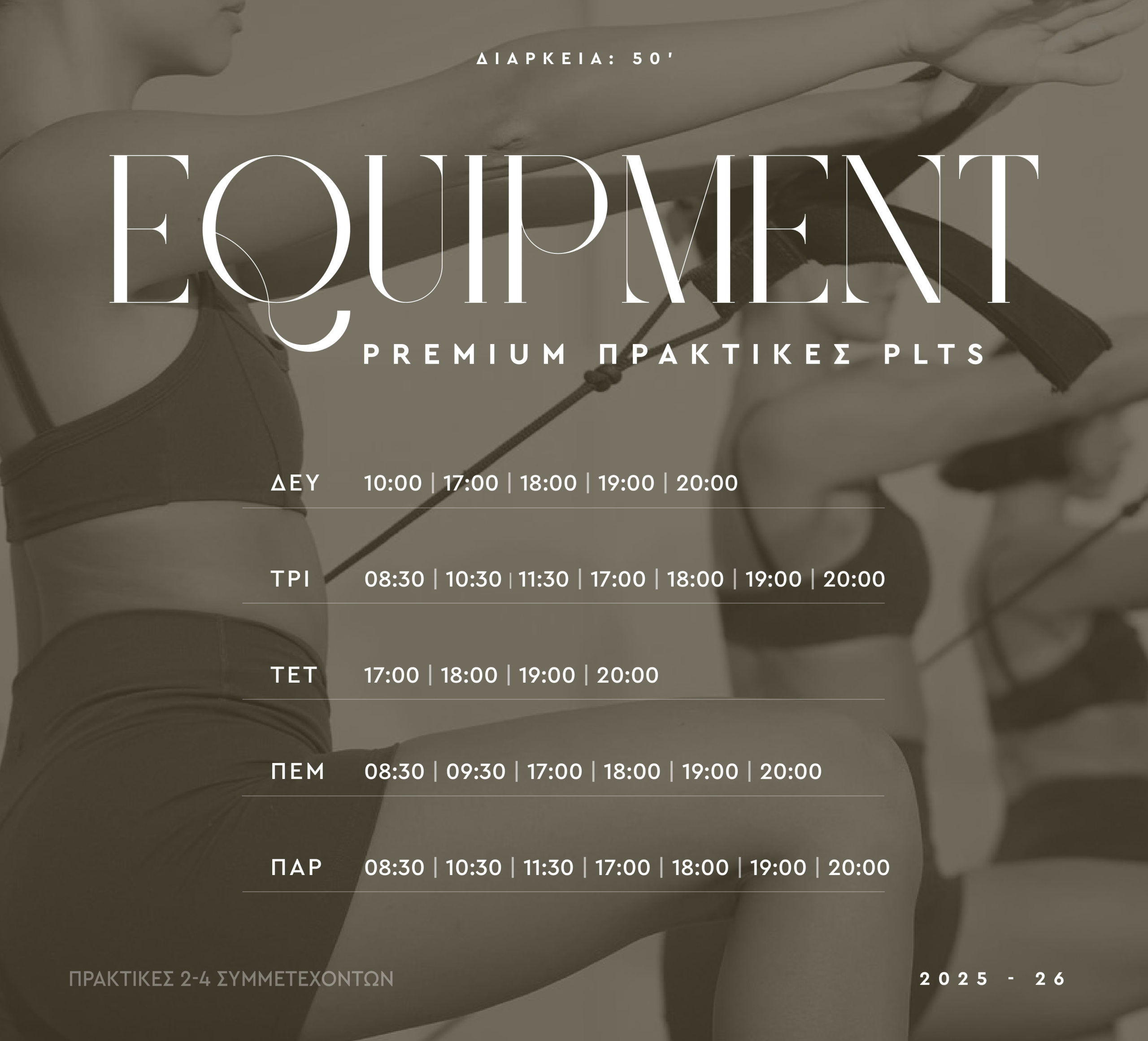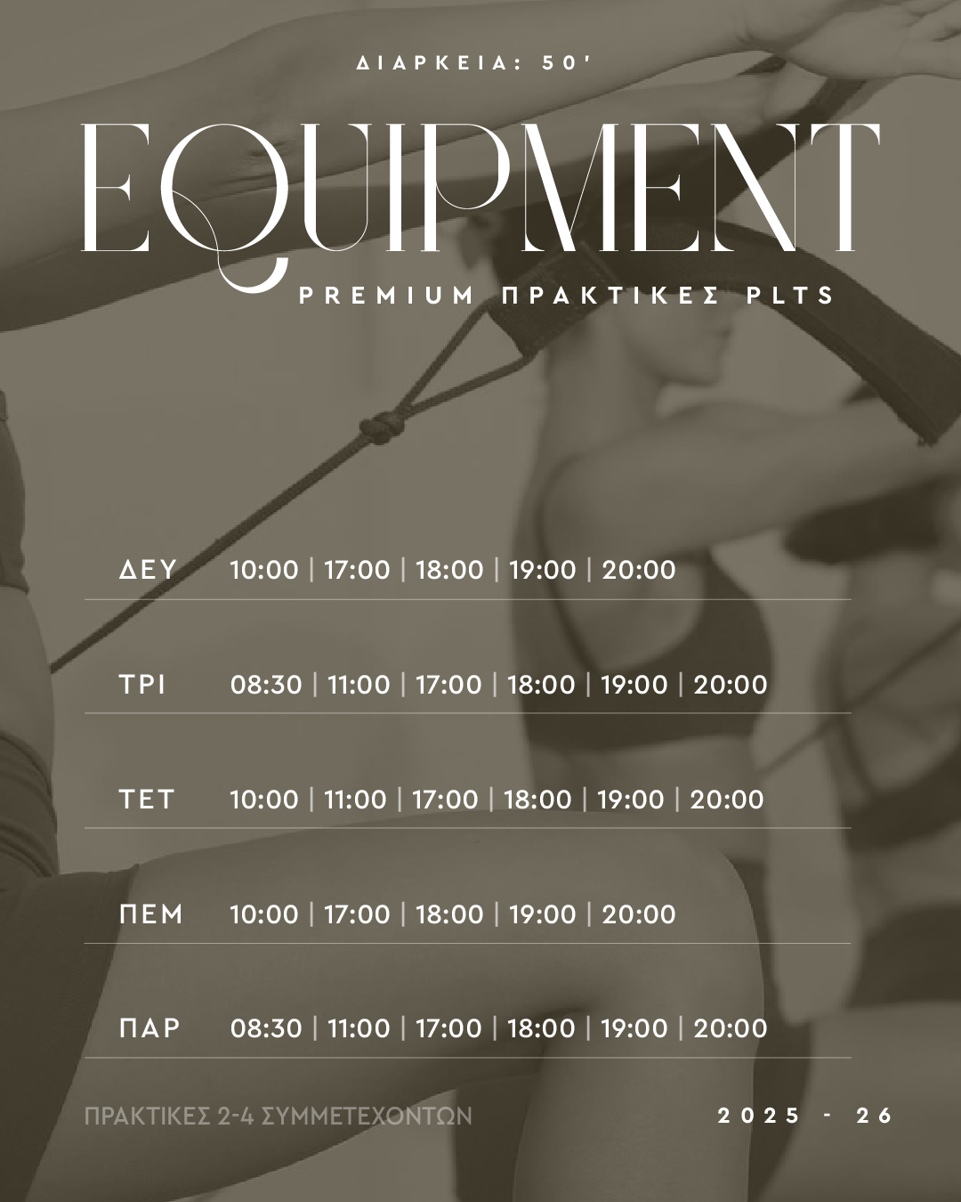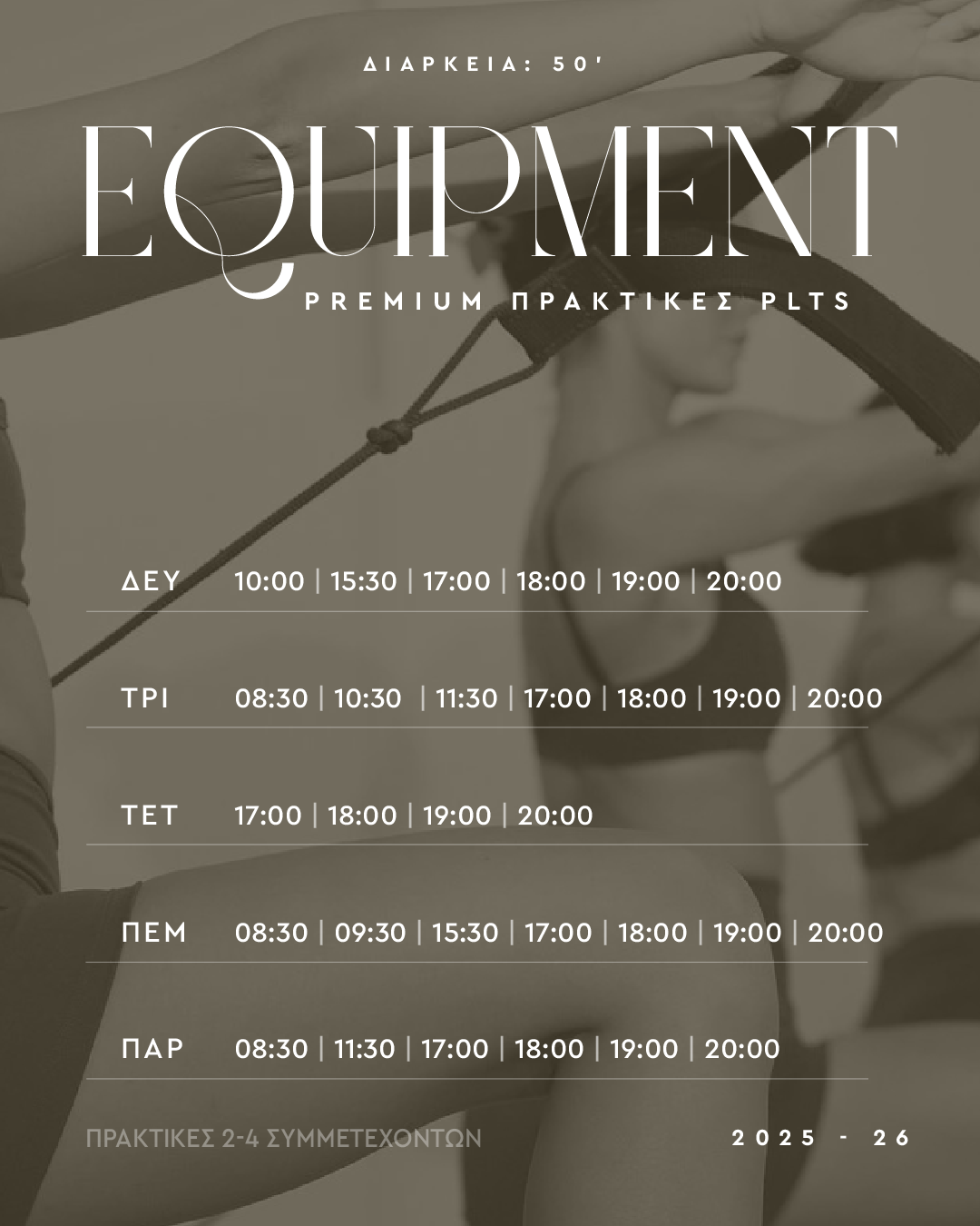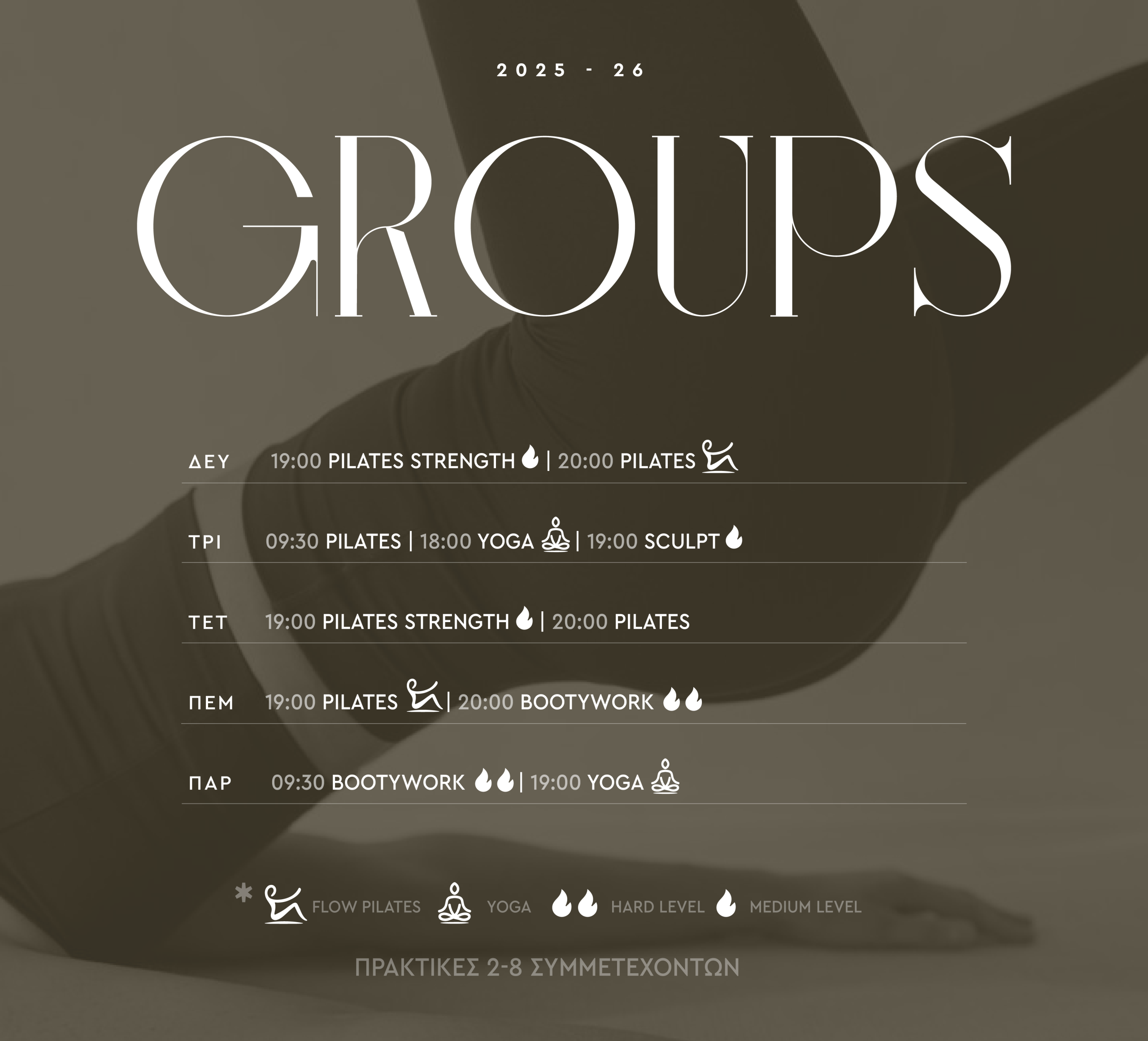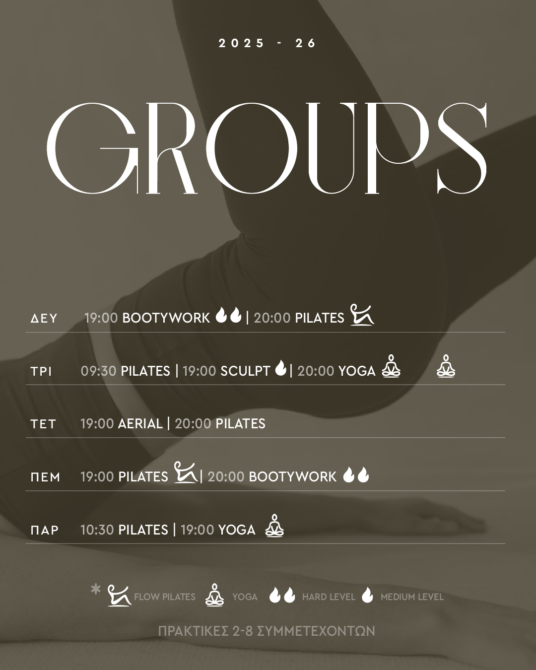 > Be on Time! Φροντίστε να είστε στην ώρα σας για την πρακτική που έχετε διαλέξει να παρακολουθήσετε.